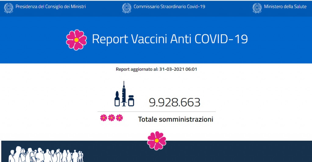 Sono 9.928.663 le dosi di vaccino anti-Covid somministrate fino ad oggi in Italia, secondo il report quotidiano del ministero della Salute. Le persone che hanno ricevuto entrambe le dosi sono 3.112.079.