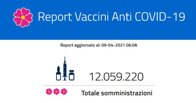 Sono 12.059.220 le dosi di vaccino somministrate in Italia fino ad ora, pari al 77,5% delle dosi consegnate all’Italia (15.568.730).