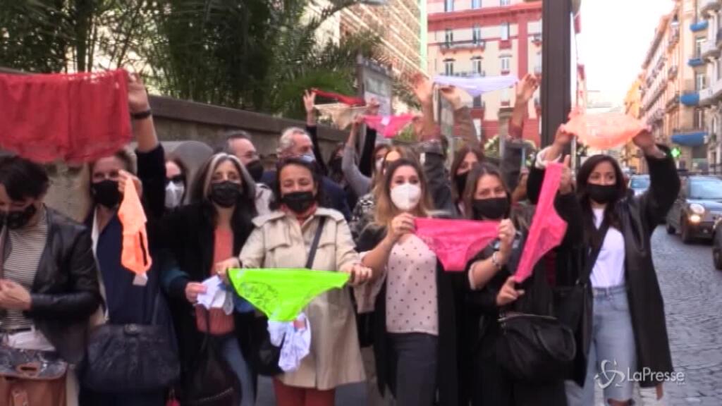 Circa 150 persone, prevalentemente donne, lavoratori e lavoratrici del settore moda, hanno organizzato la “Protesta della mutanda” a Napoli. Un flash mob andato in scena a via Filangieri per protestare contro le chiusure impartite a tutto il comparto. “La zona rossa non ha portato risultato – affermano – e noi siamo l’unico settore a restare completamente chiuso. Ci hanno lasciati in mutande, così non possiamo andare avanti”.