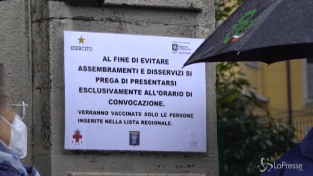 (LaPresse) Una mattinata in coda per oltre un’ora sotto la pioggia, è quello che anno vissuto decine di anziani a Milano lunedì mattina presso il centro di vaccinazione dell’Esercito di via Saint Bon 3. Si tratta di persone tra i 75 e i 79 anni, che, insieme ad alcuni over 80 in attesa del richiamo possono vaccinarsi in tutta la Lombardia: “Sono arrivata alle 11.30 perché avevo appuntamento alle 12.05. Sono riuscita ad entrare alle 13, faccia lei il calcolo”, spiega una signora esasperata dalla lunga attesa al freddo e sotto l’acqua.