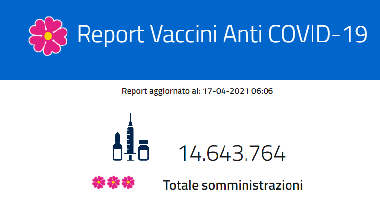 Venerdì 16 aprile è stata la giornata record per la sommnistrazione di vaccini in Italia con il maggior numero di dosi inoculate in 24 ore dall’inizio della campagna vaccinale: 347.279, secondo quanto riferito dalla struttura commissariale all’emergenza Covid. In tutto, secondo il report del ministero della Salute, sono 14.643.764 le dosi di vaccino somministrate in Italia fino ad ora, pari all’ 84,5% delle dosi consegnate (15.575.830). 4.332.143 i cittadini che hanno ricevuto due dosi. La Lombardia è la regione che ha ricevuto e somministrato il maggior numero di dosi con 2.307.182 dosi inoculate su 2.821.730 vaccini ricevuti (81,8%). Seguono il Lazio con 1.444.762 dosi inoculate sul 1.700.910 ricevute (85,1%) e l’Emilia Romagna che ha ricevuto 1.418.080 vaccini e ne ha somministrati 1.245.314 (87,8%). La Regione più virtuosa è il Veneto con 1.268.235 dosi ricevute e 1.411.840 inoculte, pari all’89,8%.