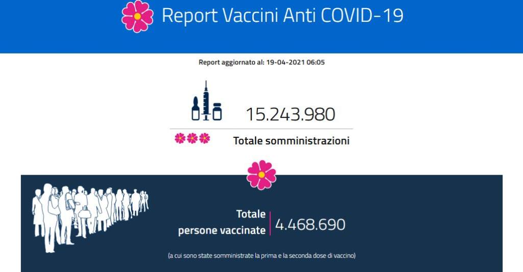 Sono 15.243.980 i vaccini somministrati finora in Italia, pari all’88% delle 17.323.080 dosi consegnate. Le persone che hanno ricevuto entrambe le dosi sono 4.468.690. Veneto e Umbria sono le regione più virtuose: la prima ha somministrato il 92,6% delle dosi ricevute (1.307.796 su 1.411.840), la seconda il 92,4% (236.932 su 256.465), Calabria fanalino di coda con solo il 77,1% di vaccini inoculati rispetto a quelli ricevuti (397.721 su 515.830). La Lombardia resta la regione che ha ricevuto più vaccini (2.821.730) e ne ha somministrati 2.390.187 (84,7%).