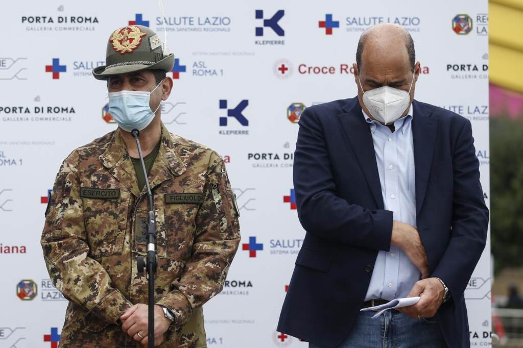 L’indicazione data alle Regioni è di utilizzare sempre almeno il 90% delle fiale, lasciando una riserva dell’8-10% per i richiami. Il resto va somministrato, il più velocemente possibile, perché il virus continua a correre, spinto dalle varianti, e l’uscita dall’incubo epidemia sarà davvero a portata di mano solo con l’immunità di gregge. La tensostruttura di circa mille metri quadri, inaugurata ieri nel centro commerciale di Roma, è composta da 26 postazioni per anamnesi, 24 box per inoculazione vaccino e 4 postazioni di preparazione del vaccino più 60 sedute in sala osservazione per il post vaccino. All’inaugurazione, oltre al generale Figliuolo, erano presenti il presidente della Regione Lazio Nicola Zingaretti, l’assessore alla Sanità Alessio D’Amato e il capo della protezione civile Fabrizio Curcio.