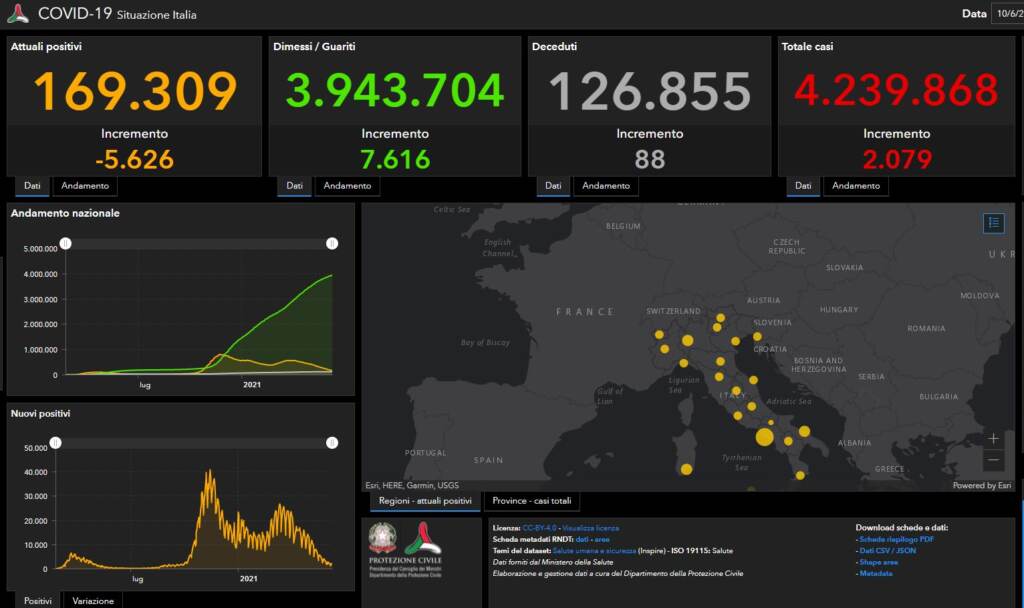 Sono ancora 88 le vittime di Covid in Italia nelle ultime 24 ore, secondo l’ultimo bollettino del Ministero della Salute. Sono 2.079 i nuovi casi registrati, per un totale di 4.239.868 dall’inizio della pandemia in Italia. Resta sostanzialmente invariato nel giro di 24 ore il tasso di positività al Covid-19 in Italia: oggi è appena sopra il punto percentuale già registrato ieri (1,01%).