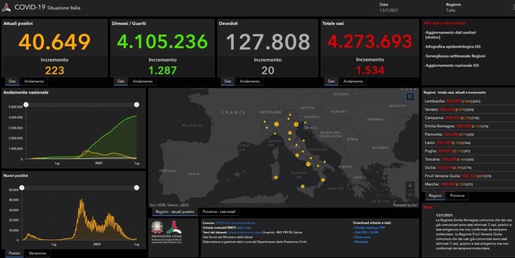La regione con maggior incremento di contagi è il Veneto, +254, davanti alla Lombardia, +241 e alla Sicilia, +174.