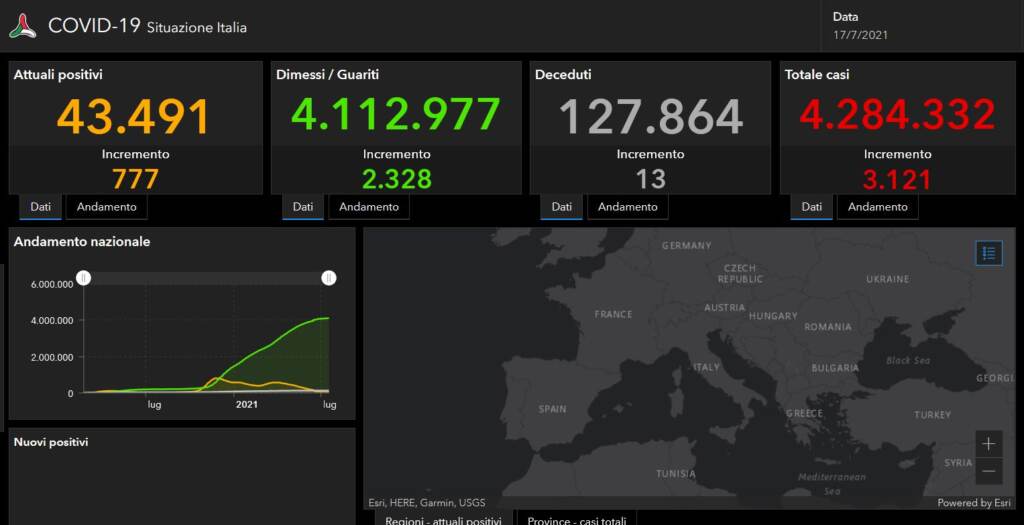 I dati Covid del 17 luglio: contagi ancora in risalita, 3.121 casi e 13 vittime in 24 ore