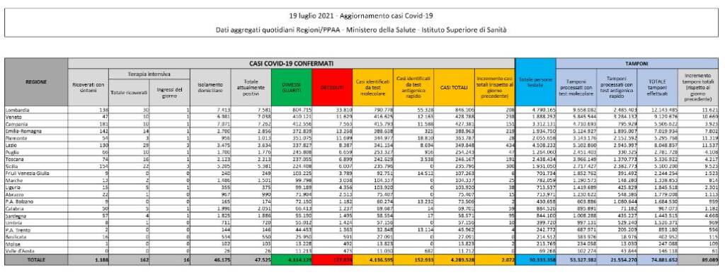 Sono 2.072 i nuovi casi di Covid in Italia, secondo quanto reso noto dal bollettino del Ministero della Salute. Come ogni lunedì, il numero dei tamponi processati è basso: nelle ultime 24 ore sono stati effettuati soltanto 89.089.