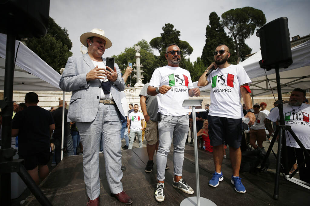 A Roma sono scesi in piazza anche alcuni esponenti di Forza Nuova.”Per il ddl Zan applausi e striscioni, andava tutto bene. Ci siamo noi e siamo no vax, siamo quelli che non vogliono rispettare le regole, siamo omofobi. Noi siamo cittadini liberi che vogliono riprendere la vita di due anni fa”, ha detto uno dei portavoce del movimento ‘Io Apro’. Si è visto anche Enrico Montesano. “Un bel tacer non fu mai scritto”, le uniche parole dette dall’attore, che ha risposto con il segno della bocca chiusa fatto con le dita ad alcune domande dei cronisti.