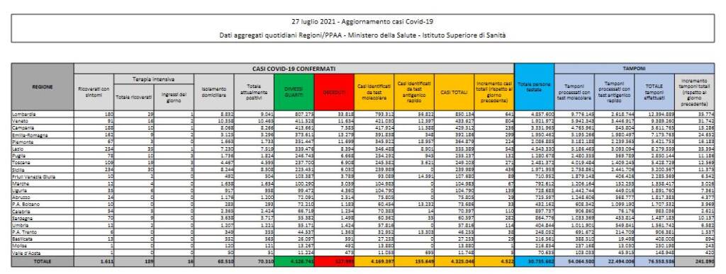 I tamponi processati (tra molecolari e antigenici) sono stati 241.890.