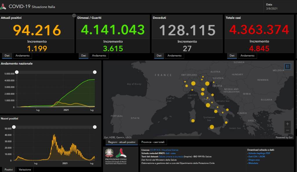 Di nuovo in crescita il numero dei casi da coronavirus in Italia. Secondo i dati del Ministero della Salute, i positivi registrati nelle ultime 24 ore sono 4.845, ben 1.655 in più rispetto a ieri.