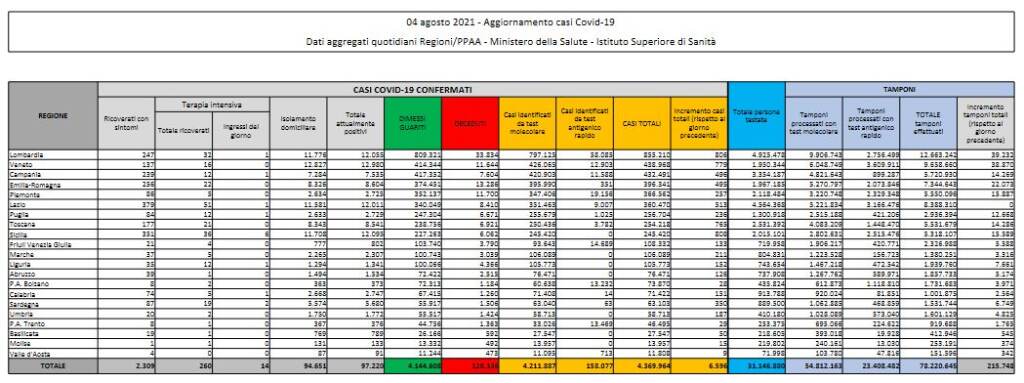 Aumenta di ben 113 unità il numero dei pazienti nei reparti Covid ordinari, per un totale di 2.309 ricoverati, mentre cresce di 2 unità quello dei posti letto occupati in terapia intensiva, dove oggi si trovano complessivamente 260 pazienti.