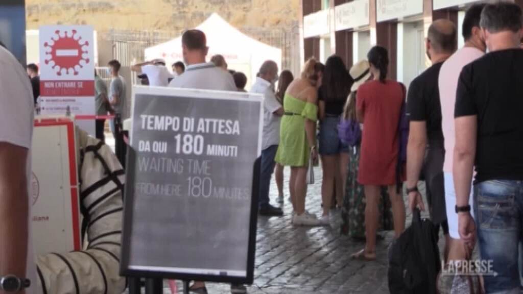 Tre ore di attesa alla stazione di Roma Termini per effettuare un tampone dell’ultimo minuto, necessario per poter entrare in ristoranti e bar durante le vacanze e viaggiare in sicurezza. “Dall’entrata in vigore del green pass siamo passati da circa 200 prelievi al giorno a 450”, spiega Altea Del Grosso, responsabile della postazione della Croce Rossa in stazione Termini, dove i tamponi sono gratuiti: “Tra le persone in attesa anche molti turisti che chiedono il certificato per poter accedere ai Musei Vaticani”. Il green pass dovrebbe essere obbligatorio anche sui mezzi di trasporto a lunga percorrenza dal primo settembre.