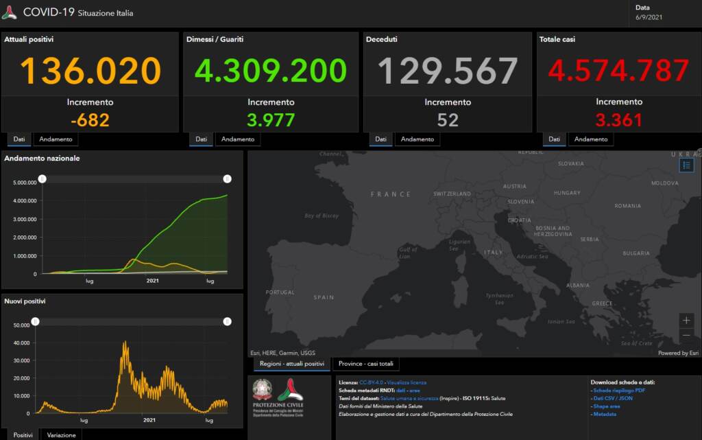 Sono 3.361 i nuovi casi di covid nel nostro Paese e 52 i decessi registrati nelle ultime 24 ore secondo l’ultimo bollettino del ministero della Salute che ha registrato, come ogni lunedì, un calo sia dei nuovi positivi che dei morti. I tamponi processati sono invece 134.393 per un tasso di positività al 2,5%. Nel saldo tra ingressi e uscite diminuiscono di due unità i ricoveri nelle terapie intensive dove ora ci sono ricoverati 570 pazienti. In aumento invece i numeri dei ricoveri ordinari: gli ultimi dati testimoniano un +86 per un totale di 4.302 persone ospedalizzate in questo momento per via del covid.