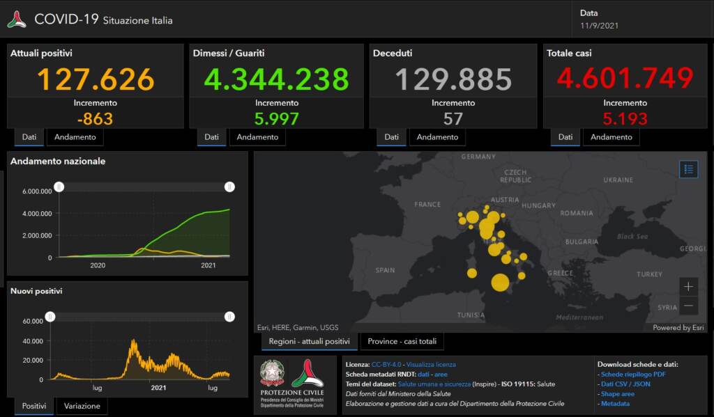 Le vittime del giorno sono 57, che portano il totale dei decessi da inizio pandemia a 129.885.