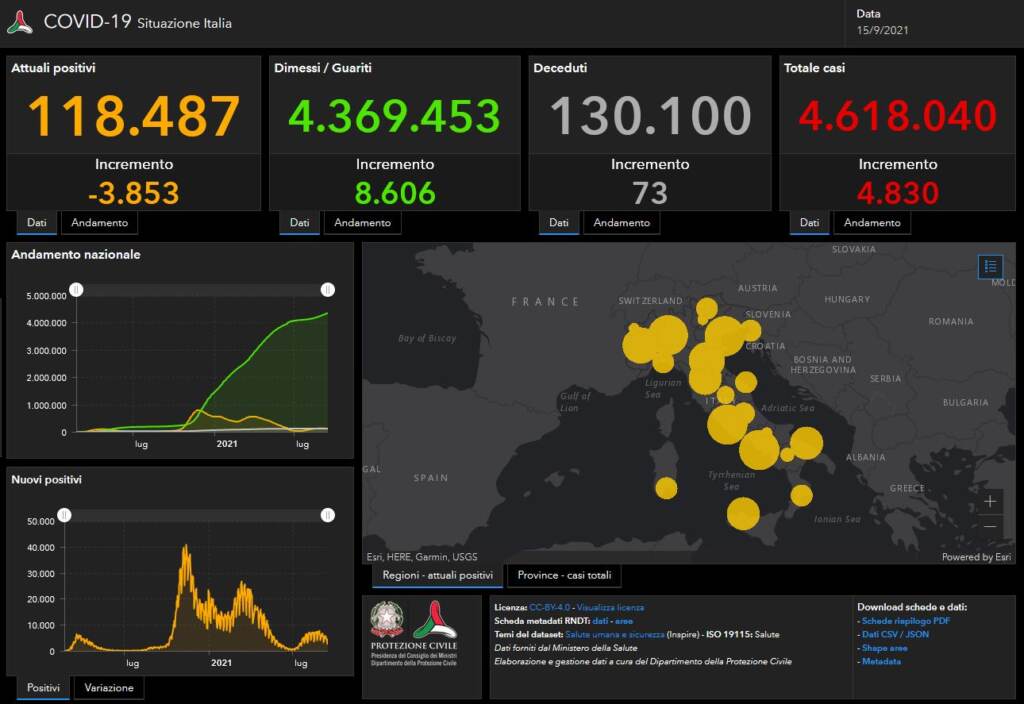 Le vittime del giorno sono 73, che portano il totale dei decessi da inizio pandemia a superare i 130mila, precisamente 130.100.