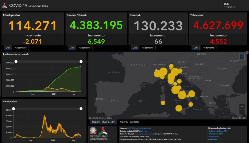I decessi sono 66, per un totale di 130.233 vittime da inizio pandemia.
