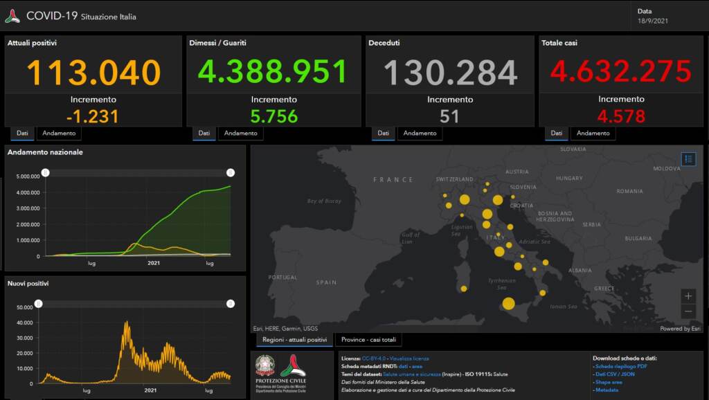 Ancora alto il numero dei decessi, 51, che porta il totale a 130.284 vittime da inizio pandemia.