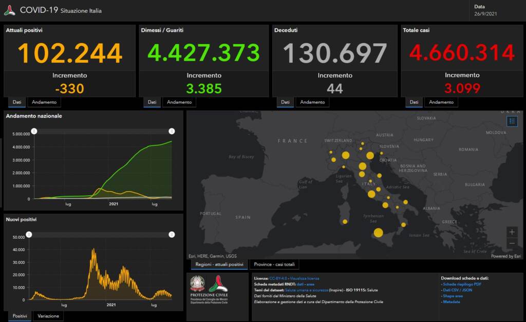 La regione con il maggior incremento dei contagi è la Sicilia, +422, davanti a Emilia Romagna, +340, e Veneto, +316.