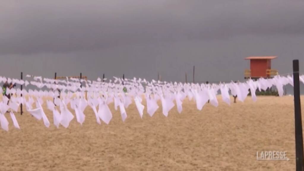(LaPresse) Un gruppo di attivisti brasiliani della Ong “Rio da Paz” ha realizzato, a Rio de Janeiro, una commemorazione in onore delle vittime di coronavirus. Si tratta di 600 fazzoletti messi in fila con corde e bandierine, esposti nel bel mezzo della spiaggia di Copacabana, nel giorno in cui il Paese ha superato le 600 mila vittime da inizio pandemia. Al momento, il gigante sudamericano è secondo solo agli Stati Uniti nella triste classifica dei Paesi con più morti totali da Covid.