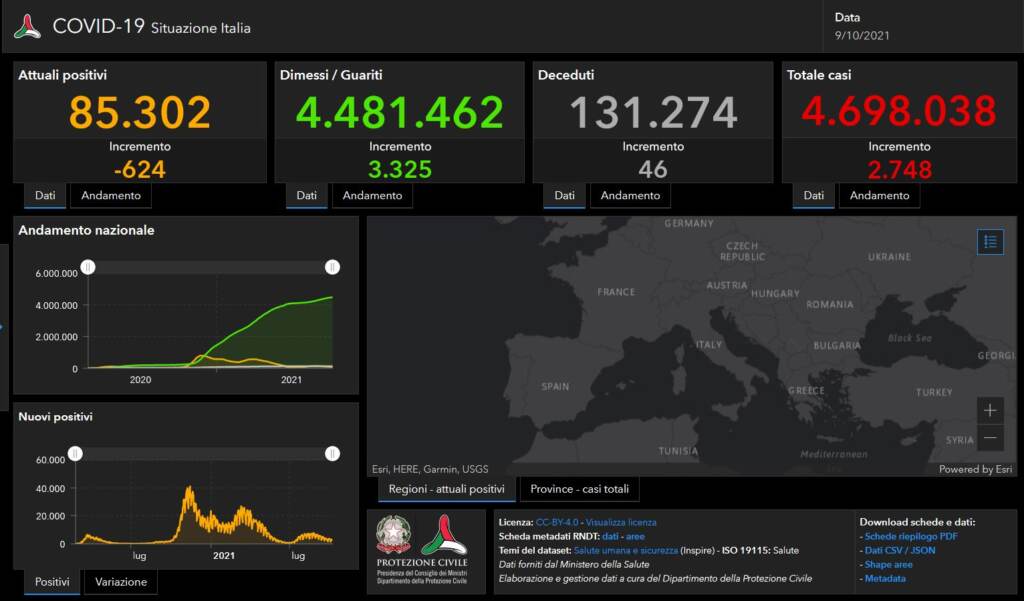 Sono 2.748 i nuovi casi di coronavirus registrati in Italia nelle ultime 24 ore, secondo il bollettino del ministero della Salute, su 344.969 tamponi processati. Il tasso di positività allo 0.8%. Le vittime del giorno sono 46, che portano il totale dei decessi da inizio pandemia a 131.274.
