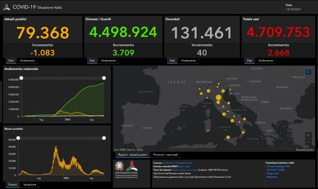 I morti sono 40 (ieri erano 37), che portano il totale a 131.461 vittime da inizio pandemia.