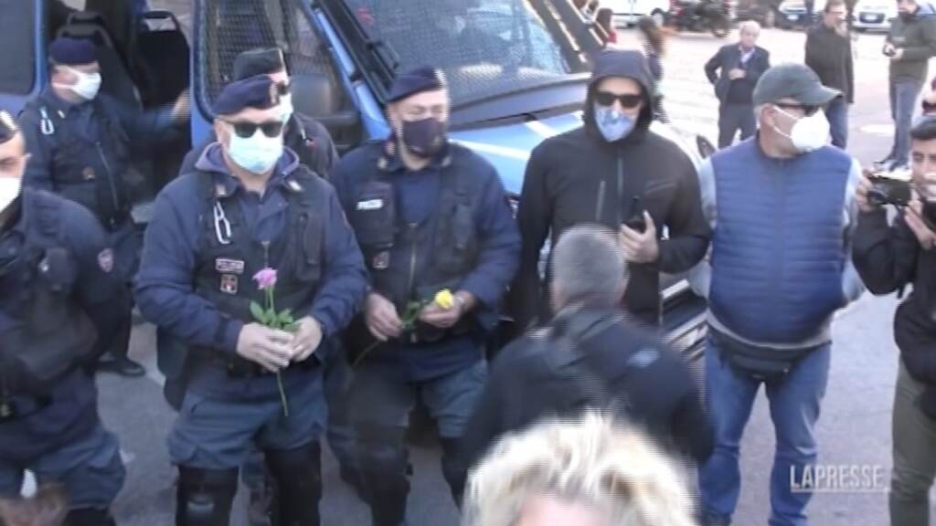 (LaPresse) Il popolo “no green pass” si è ritrovato oggi al Circo Massimo di Roma per protestare contro l’entrata in vigore da oggi dell’obbligo di green pass sui luoghi di lavoro. Una manifestazione che si preannuncia, nelle intenzioni, pacifica: in segno di distensione alcune donne hanno consegnato dei fiori alle forze dell’ordine presenti in massa per garantire la sicurezza.