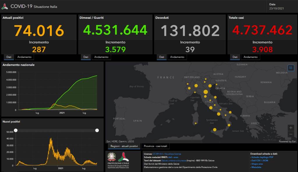 La Regione con il maggior aumento di casi è il Veneto, +457, davanti a Campania, +448 e Lazio, +423.