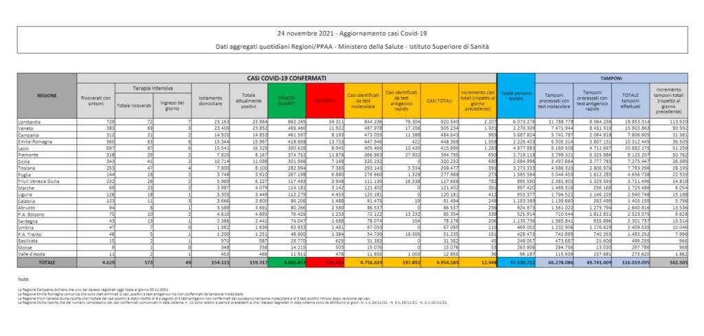 Aumentano anche le ospedalizzazioni con le terapie intensive che hanno registrato 49 nuovi ingressi per un incremento di 13 unità, considerando il saldo tra ingressi e uscite, e un totale di 573 pazienti ricoverati in rianimazione. In aumento anche i ricoveri in reparto (+32) a 4.629 in totale.