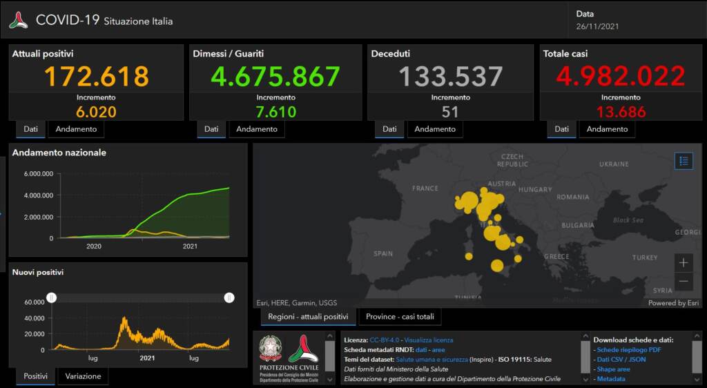 Sono 13.68 i nuovi casi di Covid-19 in Italia nelle ultime 24 ore su 557.180 tamponi effettuati, secondo i dati diffusi dal ministero della Salute. Il giorno precedente i nuovi positivi erano 13.764 su 649.998 test. 51 le vittime per un totale di 133.537 morti da inizio pandemia. Il tasso di positività è al 2,4 % rispetto al 2,1% di giovedì.