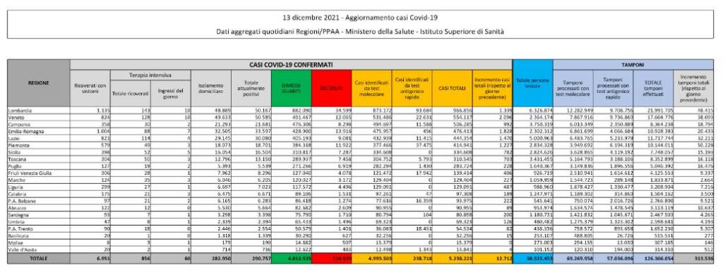 Il bollettino del 13 dicembre: altri 12.712 nuovi casi e 98 morti