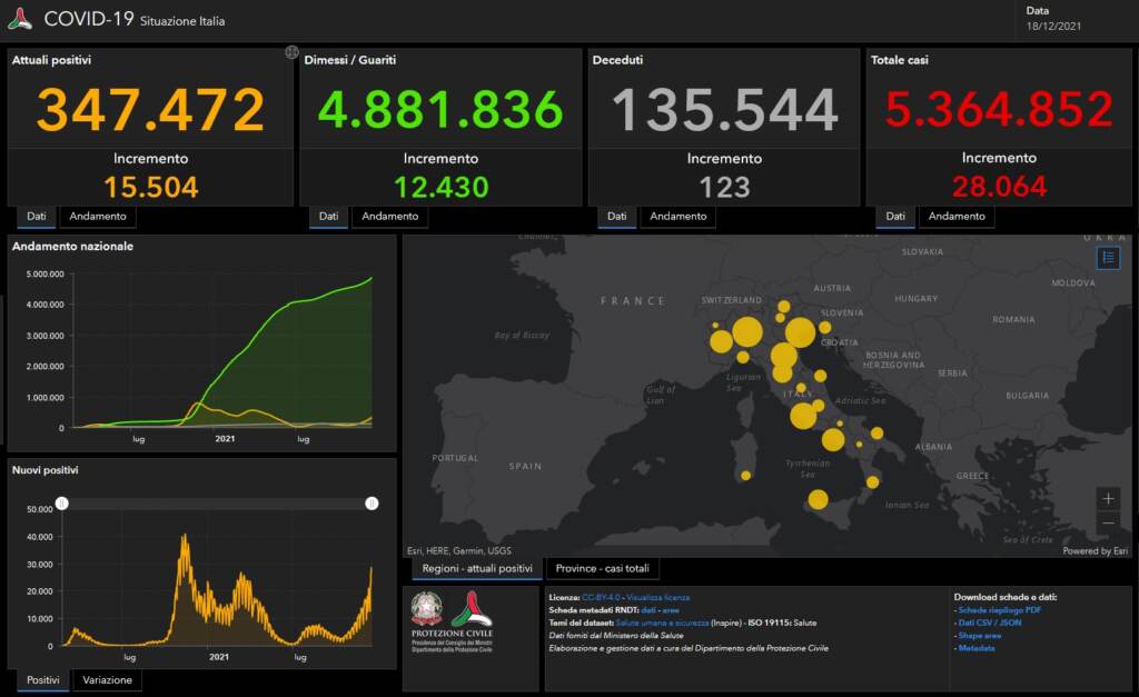 Bollettino Covid 18 dicembre, altri 28.064 contagi in Italia. 123 i decessi