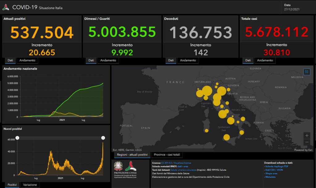 Sono 30.810 i nuovi casi di Covid in Italia, circa 6.000 in più rispetto a ieri. È quanto emerge dal bollettino quotidiano diffuso dal Ministero della Salute. I tamponi processati – tra molecolari e antigenici – sono stati 343.968, quasi 127mila in più rispetto al giorno precedente.