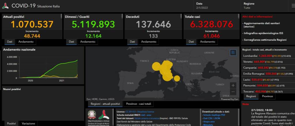 Sono 61.046 i casi di Covid nelle ultime 24 ore (ieri erano stati 141.262), secondo il bollettino del Ministero della salute. Le vittime sono 133 contro le 111 di ieri. Pochissimi però i tamponi processati: se il giorno precedente erano oltre un milione, oggi sono stati 278.654. Il tasso di positività dunque schizza al 21,9%.