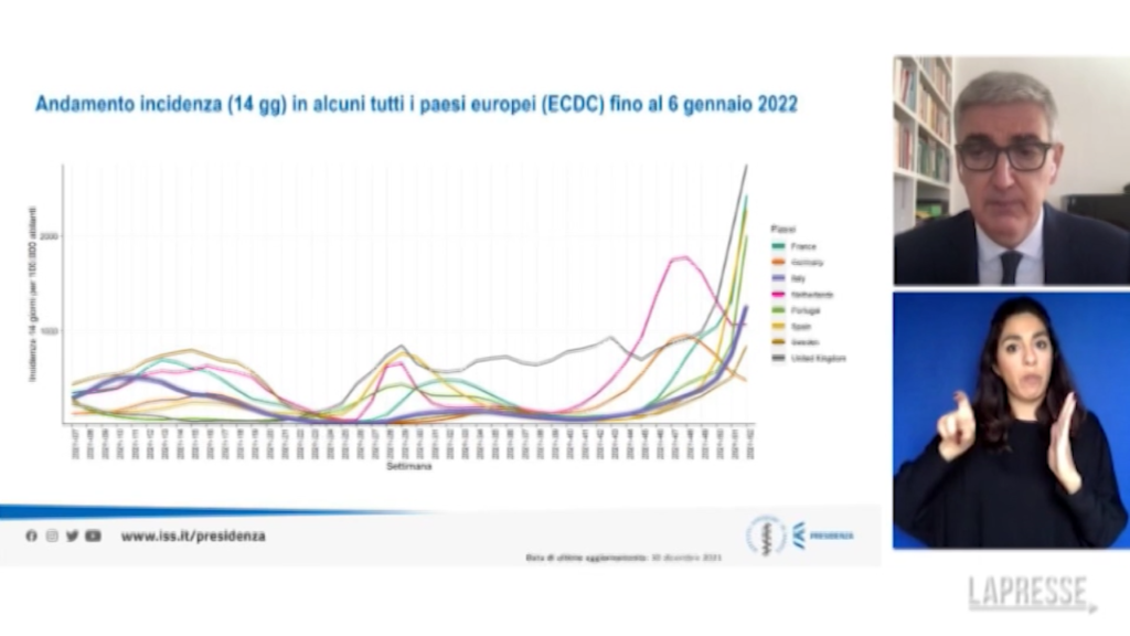 (LaPresse) Silvio Brusaferro commenta i dati del monitoraggio settimanale del ministero della Salute: “In Italia c’è una rapida impennata del numero di nuovi casi Covid e una fortissima circolazione del virus in tutte le Regioni tranne che nella Provincia autonoma di Bolzano dove ci sono segnali di una decrescita”, dice il presidente dell’Istituto superiore di Sanità. Rallenta la crescita dei casi nella fascia 5-11 ma sebbene limitati – sottolinea Brusaferro – si registrano ricoveri anche in fascia pediatrica.