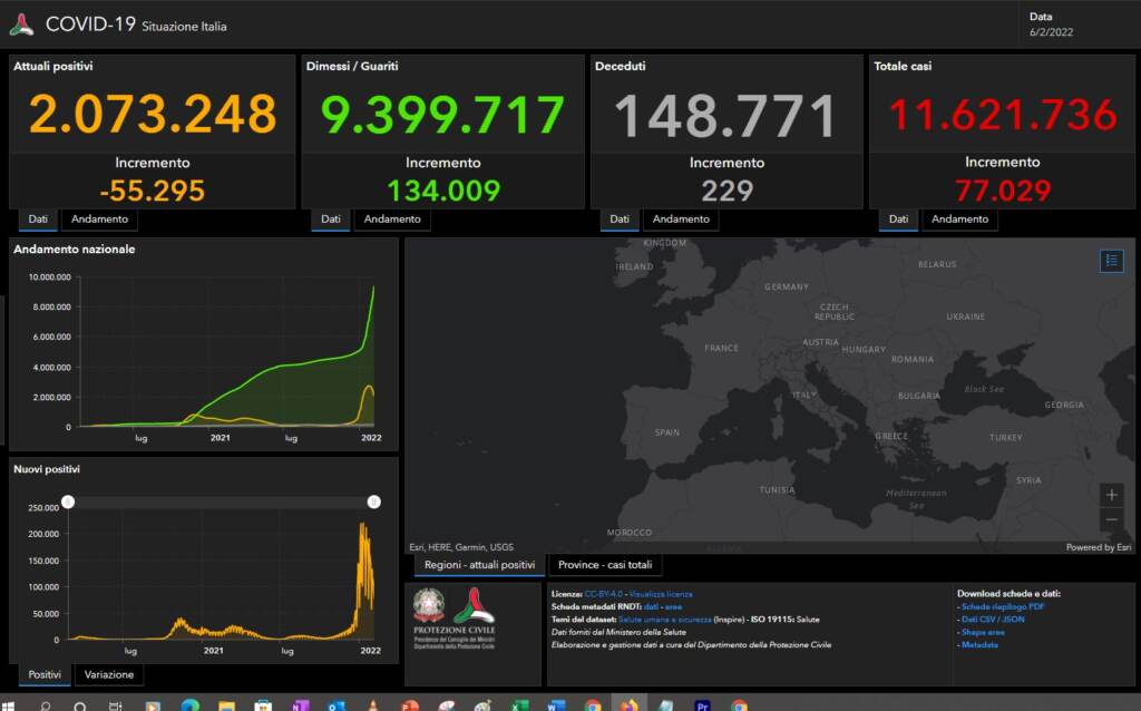 Il bollettino Covid del 6 febbraio: oltre 77mila casi e 229 vittime