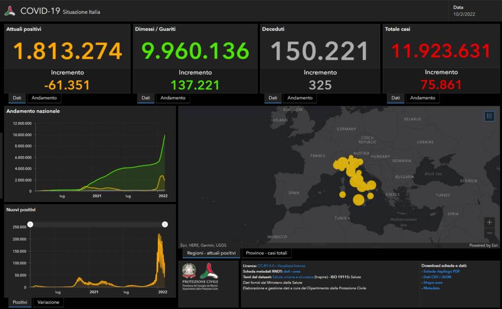 Bollettino Covid del 10 febbraio: 75 mila nuovi casi, superati i 150 mila morti
