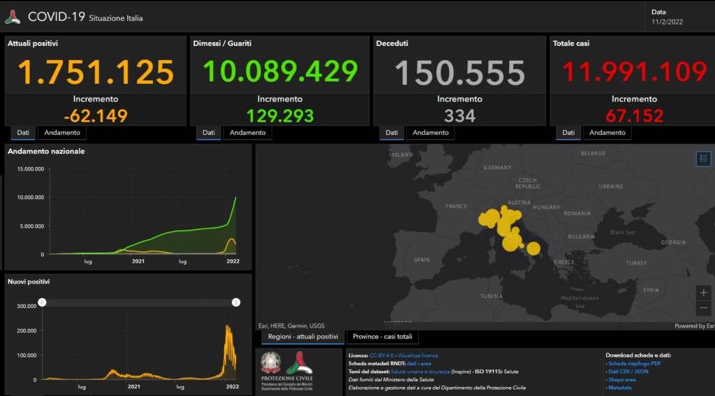 Covid, il bollettino dell’11 febbraio: 67.152 nuovi casi e 334 morti