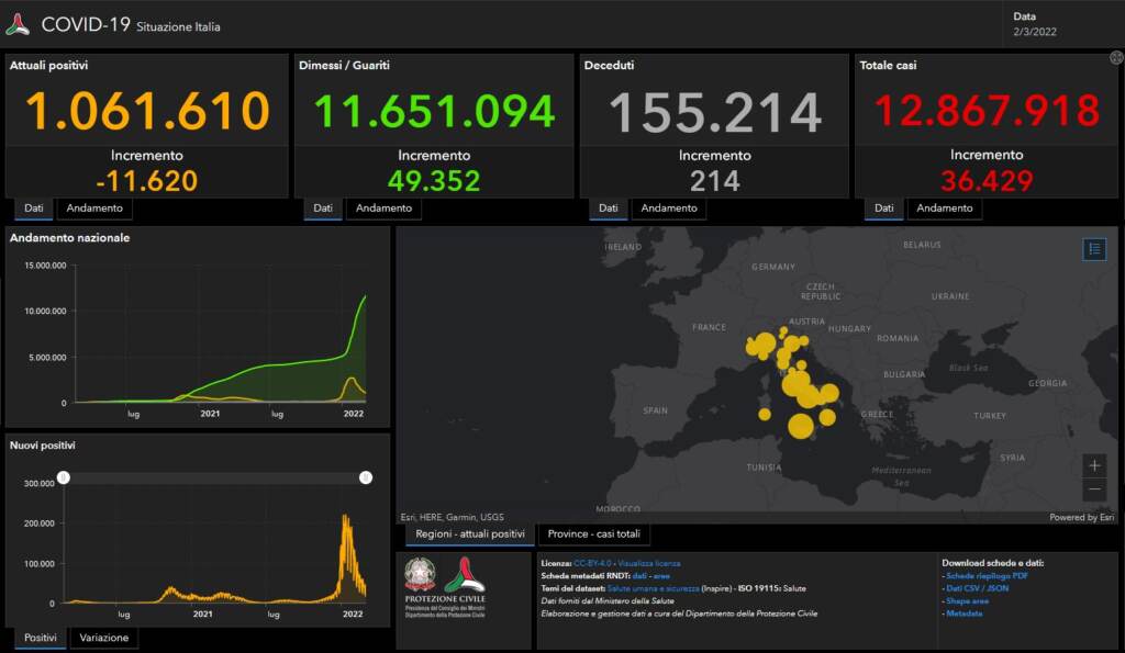 Bollettino Covid del 2 marzo: 36.429 i nuovi casi, tasso di positività ancora all’8,8%