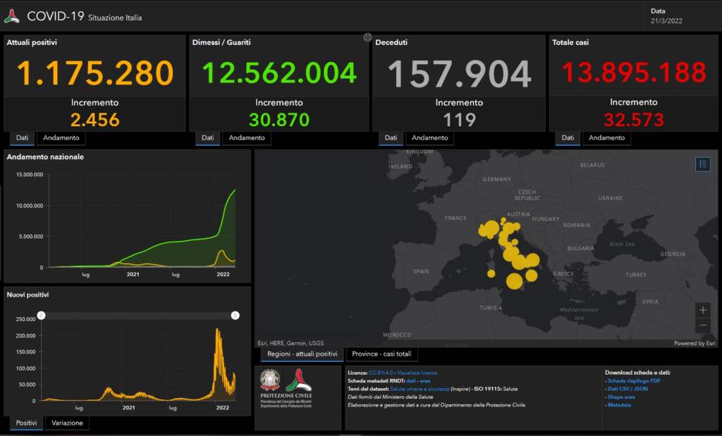 Sono 32.573 i nuovi casi covid registrati in Italia nelle ultime 24 ore, secondo il bollettino quotidiano del ministero della Salute, su oltre 218mila tamponi processati. le vittime del giorno sono 119. Cala il tasso di positività al 14,9% (-1,4% rispetto al giorno precedente).