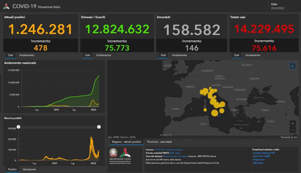 Bollettino Covid 25 marzo, 75.616 i nuovi contagi. I decessi sono 146