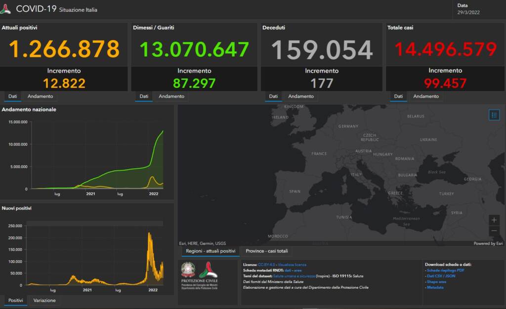 Sono 99.457 i casi covid registrati in Italia nelle ultime 24 ore, su oltre 660mila tamponi processati, secondo il quotidiano bollettino del ministero della Salute. Il tasso di positività al 15,1%, contro il 14,5% di ieri. Aumentano anche i ricoveri ordinari: +244 persone, ma restano stabili le terapie intensive, i pazienti sono 487, come ieri.