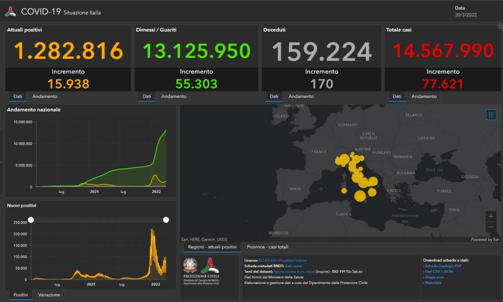 Bollettino Covid del 30 marzo: 77.621 i nuovi casi, 170 i morti