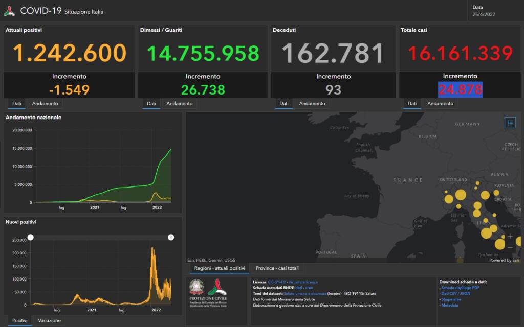 Sono 24.878 i nuovi casi covid registrati in Italia nelle ultime 24 ore, su 138.803 tamponi processati, tra molecolari e antigenici: il tasso di positività pari al 17,9% (+0,7% rispetto al giorno precedente). E’ quanto riporta il bollettino quotidiano del ministero della Salute sull’andamento della pandemia nel nostro Paese. Le vittime del giorno sono 93. Sono invece 26.738 i guariti.
