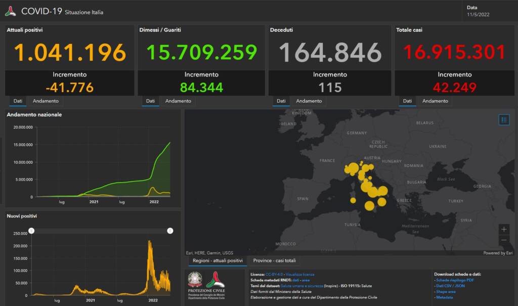 Bollettino Covid 11 maggio: 42.249 nuovi contagi, 115 i decessi