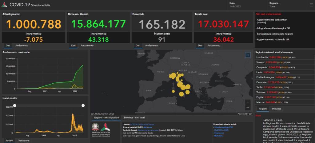 I tamponi sono 263.747, che portano il tasso di positività al 13,7%.