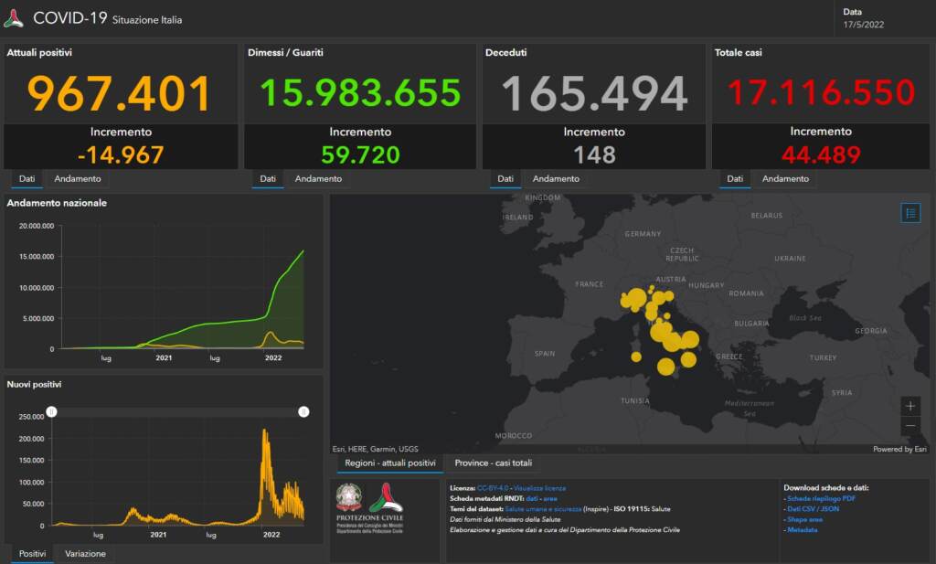 Covid, il bollettino del 17 maggio: 44.489 casi e 148 morti, positività al 13,3%