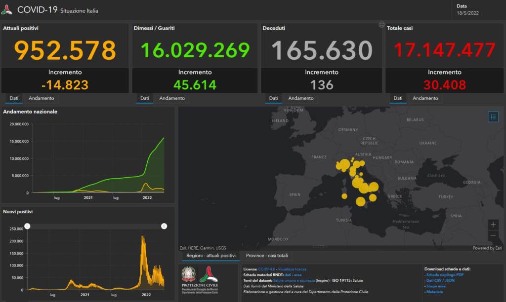 Bollettino Covid del 18 maggio: poco più di 30 mila i nuovi casi, 136 decessi