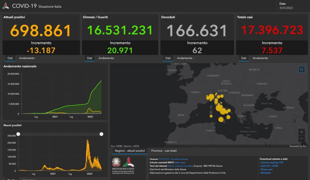 Covid-19, il bollettino del 30 maggio: 7.537 casi e 62 morti