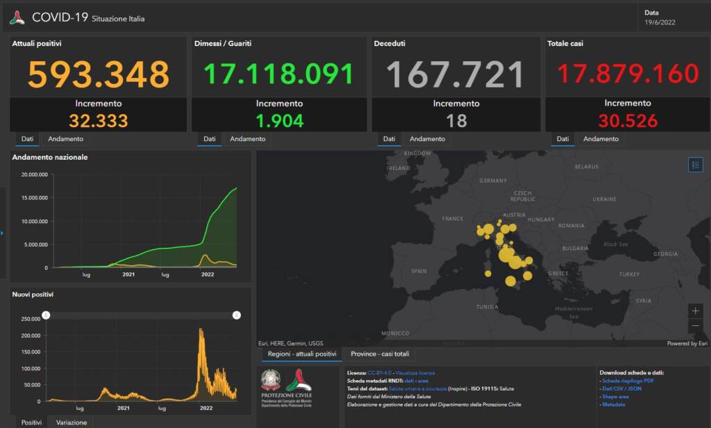 Sono 30.526 i nuovi casi di coronavirus registrati in Italia nelle ultime 24 ore, su 160.211 tamponi processati. Il tasso di positività al 19%. Gli attualmente positivi sono 32.333. Le vittime del giorno sono 18, che portano il totale dei decessi da inizio pandemia a 167.721.