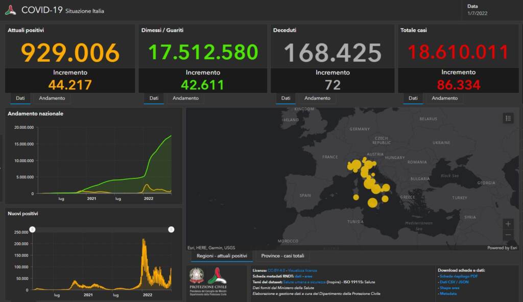 Il bollettino Covid del 1 luglio: 86.334 nuovi casi e 72 morti. Il tasso scende al 27,3%
